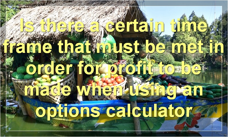 There is no one definitive answer to this question. The time frame for making a profit when using an options calculator will vary depending on the factors involved in each individual case. Some important factors to consider include the strike price of the option, the underlying stock price, the volatility of the underlying stock, and the time until expiration. In general, however, the sooner you can exit your position, the greater the chances are for making a profit.